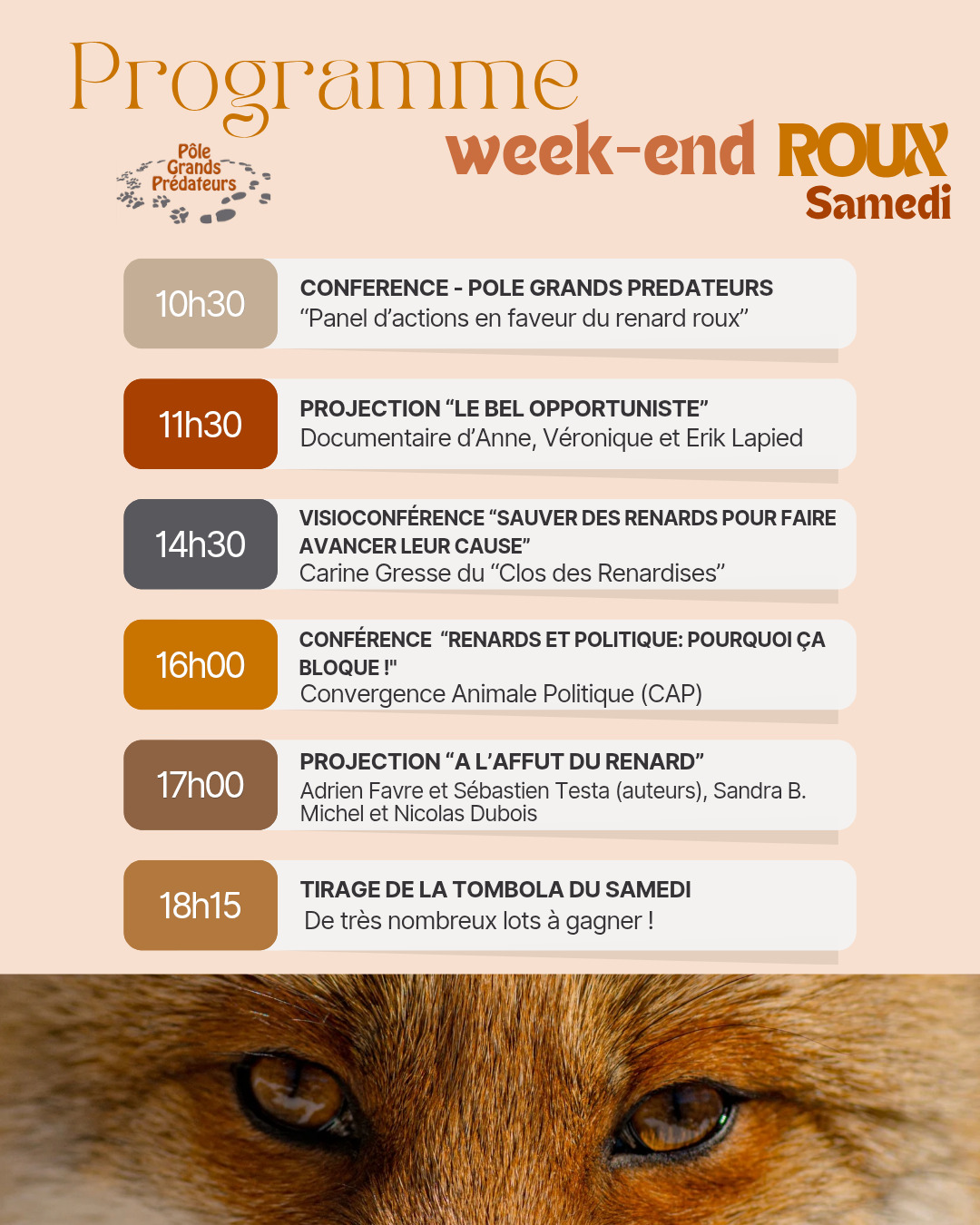 Ces deux jours seront entièrement dédiés au renard roux à travers : expos photo et artistique, stands associatifs, animations, projections, conférences…
