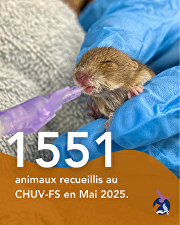 1551 animaux ont été recueillis au CHUV-FS , contre 1139 en mai 2024, soit une hausse de +36 % . Depuis le début de l'année, c'est 4118 animaux qui sont arrivés dans nos centres.