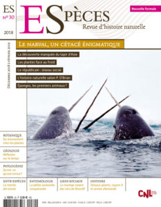 • Le narval : un cétacé à la dent énigmatique par Jean-Pierre Sylvestre (guide de croisière aux baleines en Arctique et Antarctique et spécialiste des cétacés). Le Narval, légende de l'Arctique ! Si l'on ne croit plus aujourd'hui aux licornes, le cétacé à la longue dent n'a pas encore livré tous ses secrets. Un petit détour dans les Alpes pour observer les plantes s'adapter au froid et, pour vous réchauffer, en Afrique à la rencontre d'une étonnante société d'oiseaux. Une pincée d'histoire avec une enquête inédite sur la découverte manquée du tapir d'Asie et un soupçon d'aventure avec l'épopée de Jack Aubrey. Enfin, un détour aux origines de la vie animale avec les éponges... et bien d'autres choses encore, car une grande biodiversité habite ce numéro d'hiver !