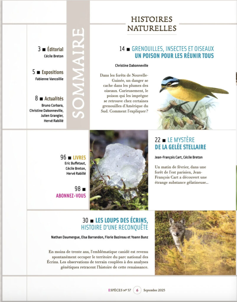 Dans ce numéro vous découvrirez aussi la mystérieuse substance qui fascine les naturalistes depuis l’Antiquité et les sources d’inspiration (pas toujours sérieuses) des biologistes pour nommer les espèces.