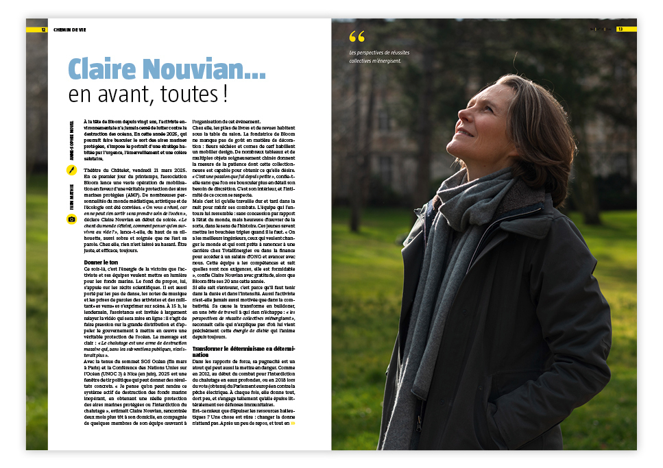 - Claire Nouvian : portrait de la fondatrice de l'association Bloom, qui sensibilise à la protection des écosystèmes marins .