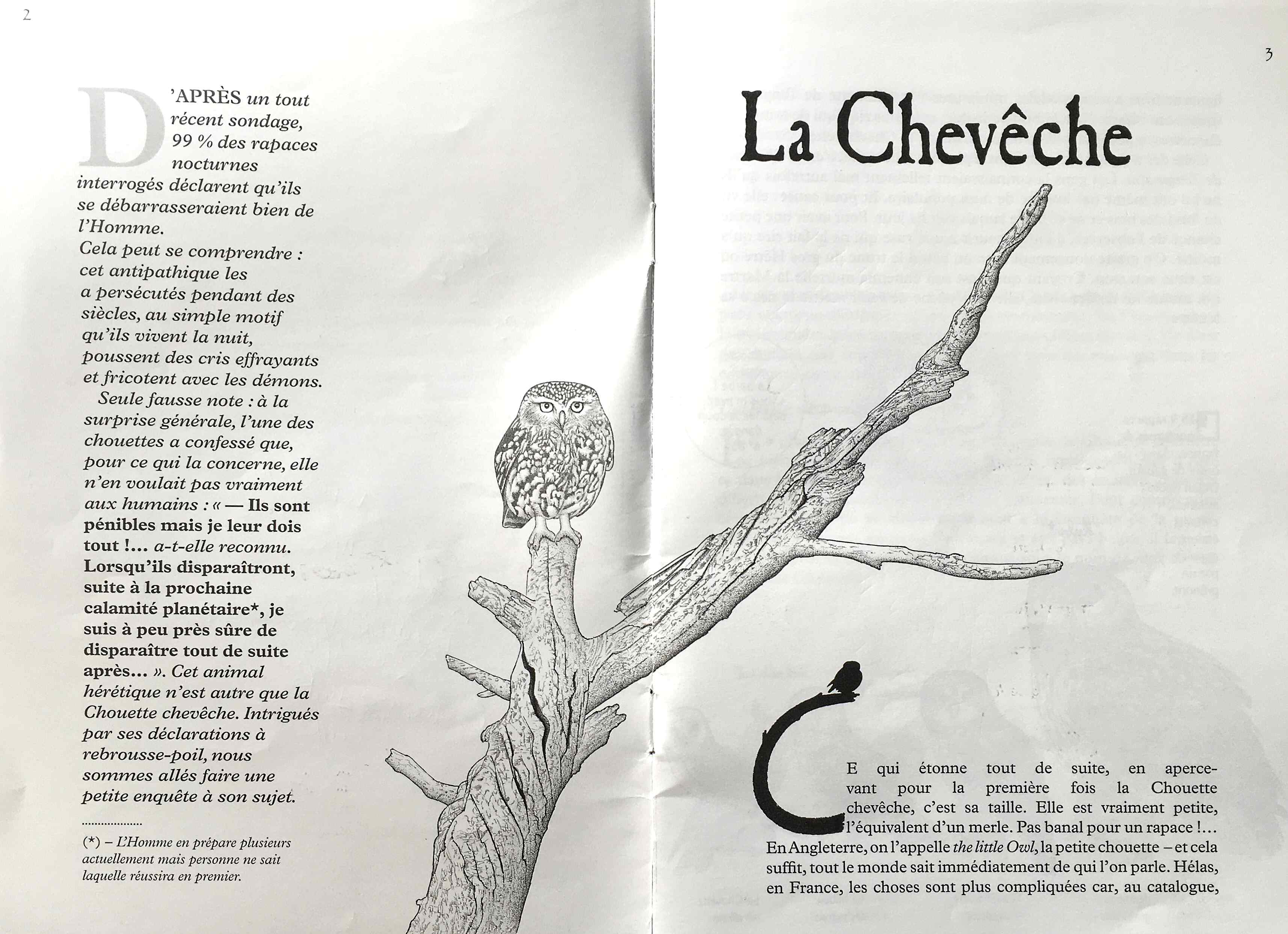 Avec ses yeux jaunes et ses sourcils froncés de grand-mère ronchon, elle a l'air perpétuellement en colère — mais ce n'est qu'une illusion : tous ceux qui la connaissent savent au contraire que la Chouette chevêche a bon caractère.