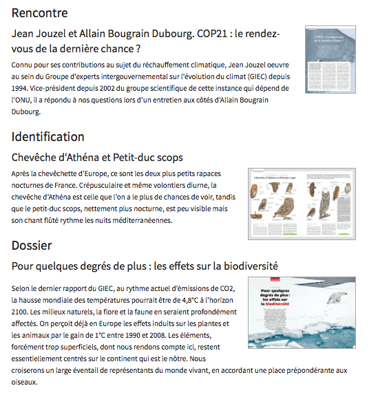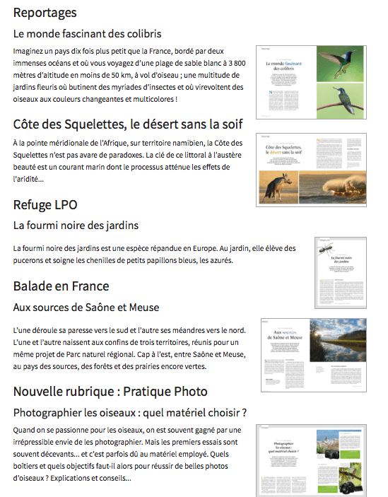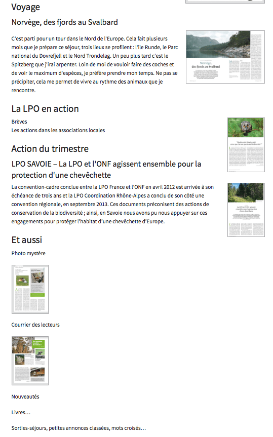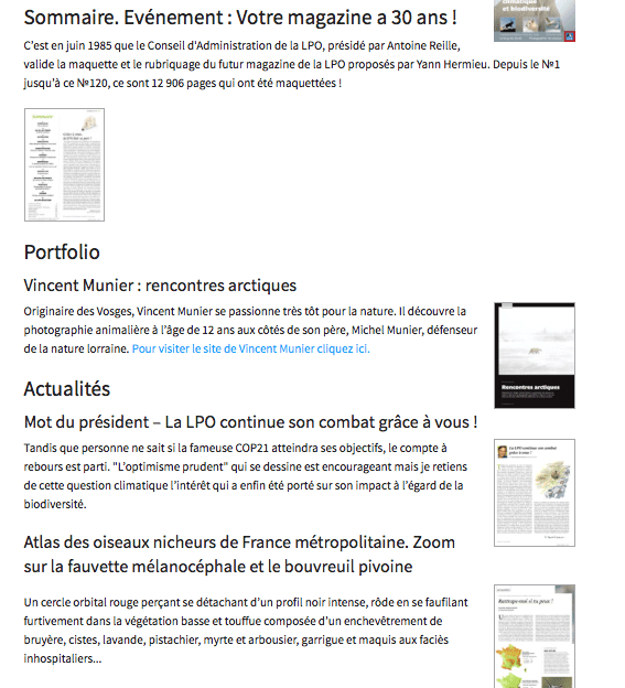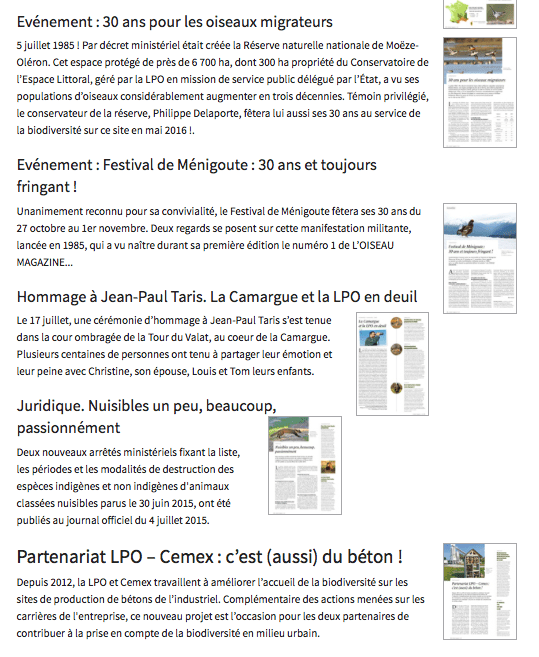 cet anniversaire avec ce numéro 120. Régulièrement, la maquette de L’OISEAU MAGAZINE évolue, comme ici où elle a été entièrement repensée. Rien n’est cependant figé et nous saurons toujours rester à votre écoute pour avancer encore. L’OISEAU MAG est à l’image de la LPO, toujours en mouvement pour répondre aux défis que nous devons relever ensemble pour l’oiseau libre, la biodiversité et l’homme. Dans le panel des "magasines de nature" L’OISEAU MAG fait figure de grand : qualité, sur la forme et sur le fond, oblige. En revanche, comme publication associative uniquement accessible sur abonnement, il reste fragile. Très