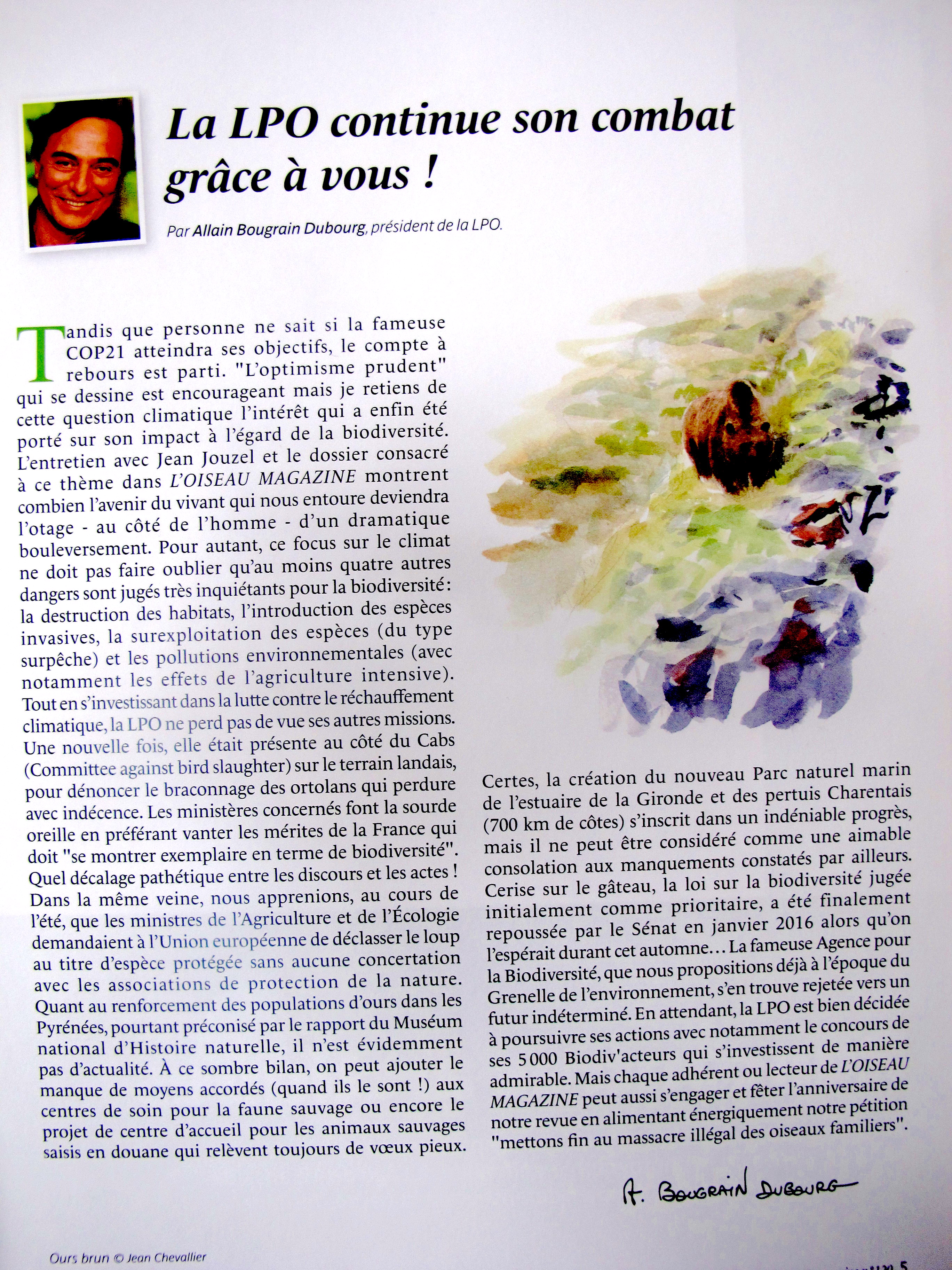 "Son chemin sera celui que tous les adhérents et les sympathisants de la LPO voudront bien lui faire prendre", pouvait-on lire sous la plume de Yann Hermieu, rédacteur en chef, dans