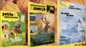 Les nouvelles revues d’octobre-novembre sont là ! La Petite Salamandre part à la rencontre du rigolo escargot, star d’un dossier plein de jeux, bricolages et recettes d’automne. La Salamandre Junior suit le cerf au cœur du brame, dans la forêt en effervescence. Et la Revue Salamandre lève le voile sur le vent, force invisible qui modèle notre planète et influence le climat.