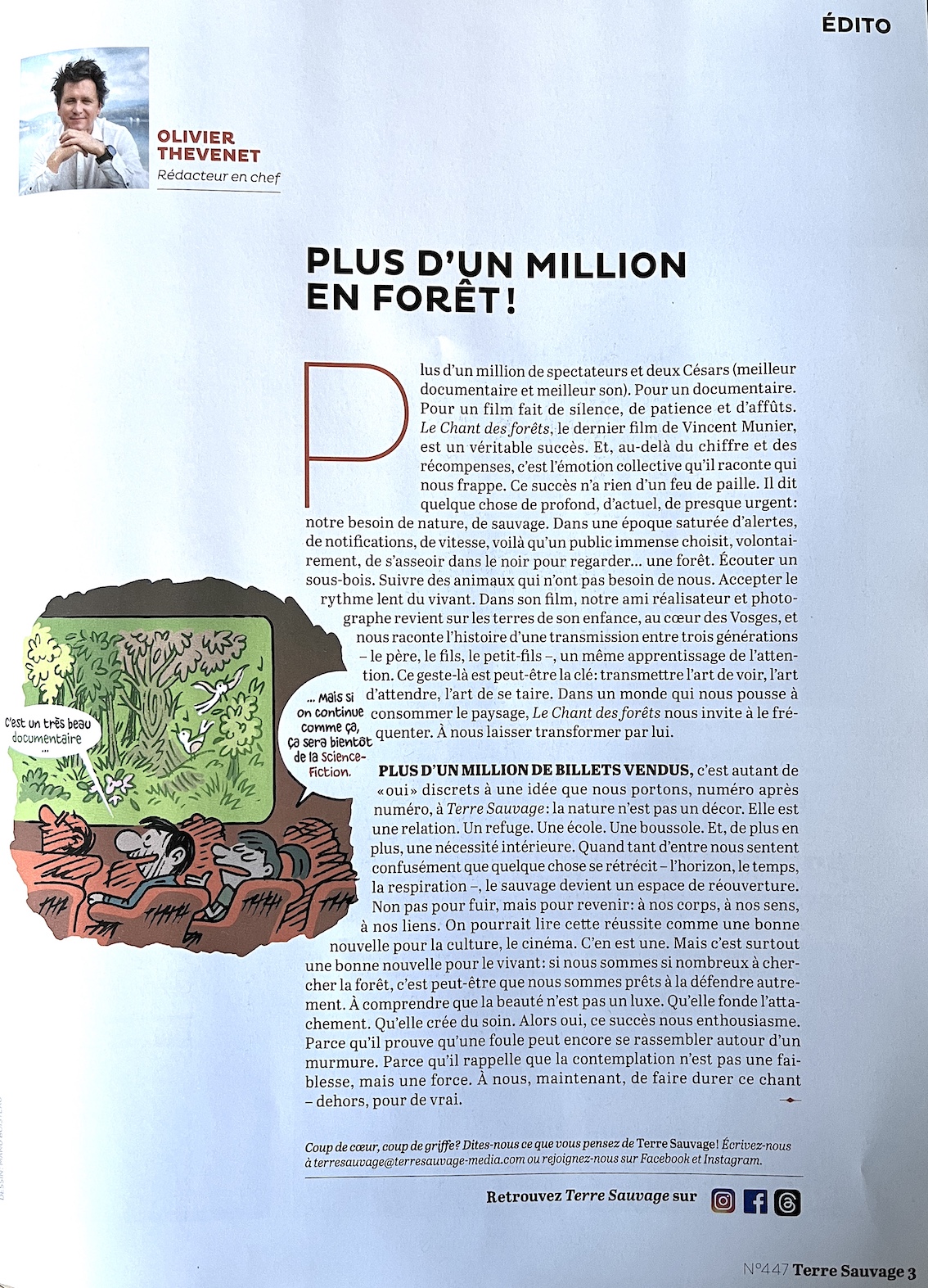 L'édito d'Olivier Thévenet, Rédac chef de Terre Sauvage : pour les forêts