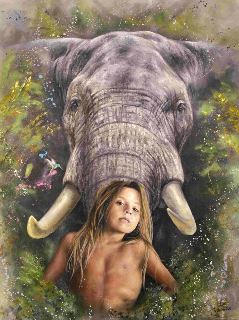 Dernièrement, je ressens aussi le besoin de créer des œuvres plus symboliques et plus libres, où je mêle l’animal, l’humain et le végétal, pour évoquer le lien profond qui unit tous les êtres vivants.