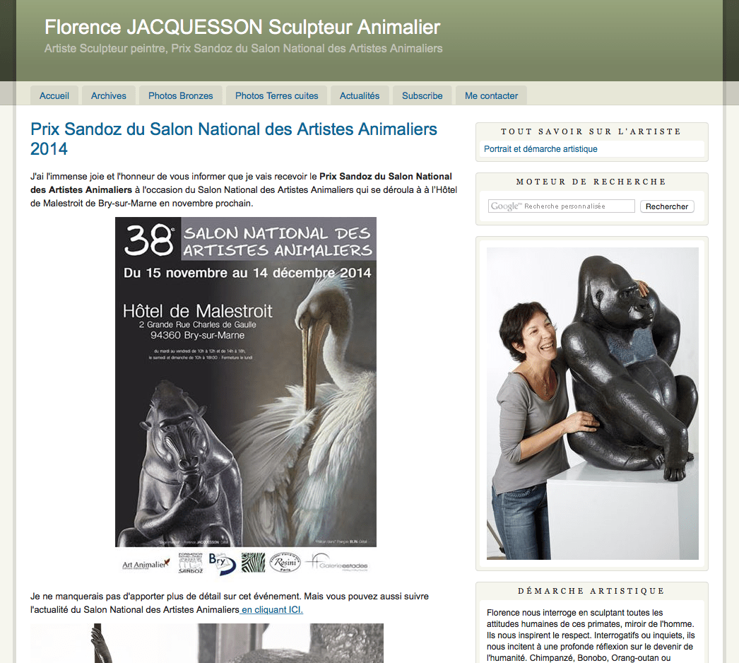 Florence Jacquesson interroge ses contemporains en sculptant toutes les attitudes humaines de ces primates. Miroir de l’homme, ils nous inspirent le respect. Interrogatifs, inquiets, pensif et sage, ils nous incitent à une profonde réflexion sur le devenir de la planète dont nous sommes locataires.
