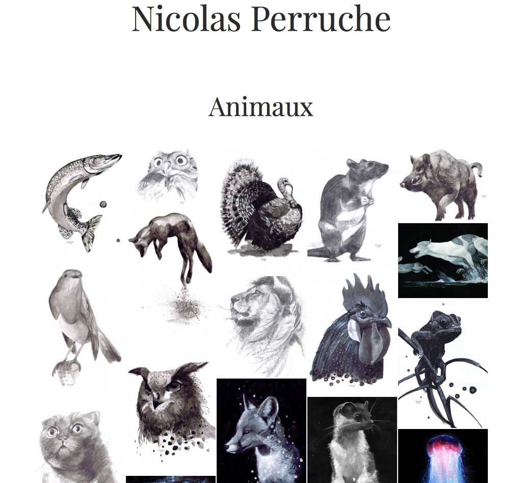 Dessinateur de formation et musicien autodidacte, Nicolas Perruche expose régulièrement sur des thèmes bien spécifiques autour du monde animal.