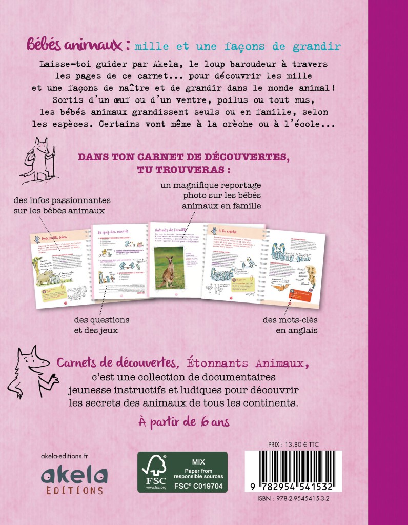 Un carnet documentaire tendre et amusant sur les relations entre les bébés animaux et leurs parents. Dans ce 3e titre de la collection « Carnets de découvertes Étonnants animaux », illustré par Béatrice Rodriguez, Emmanuelle Grundmann raconte les mille et une façons de grandir dans le monde animal.