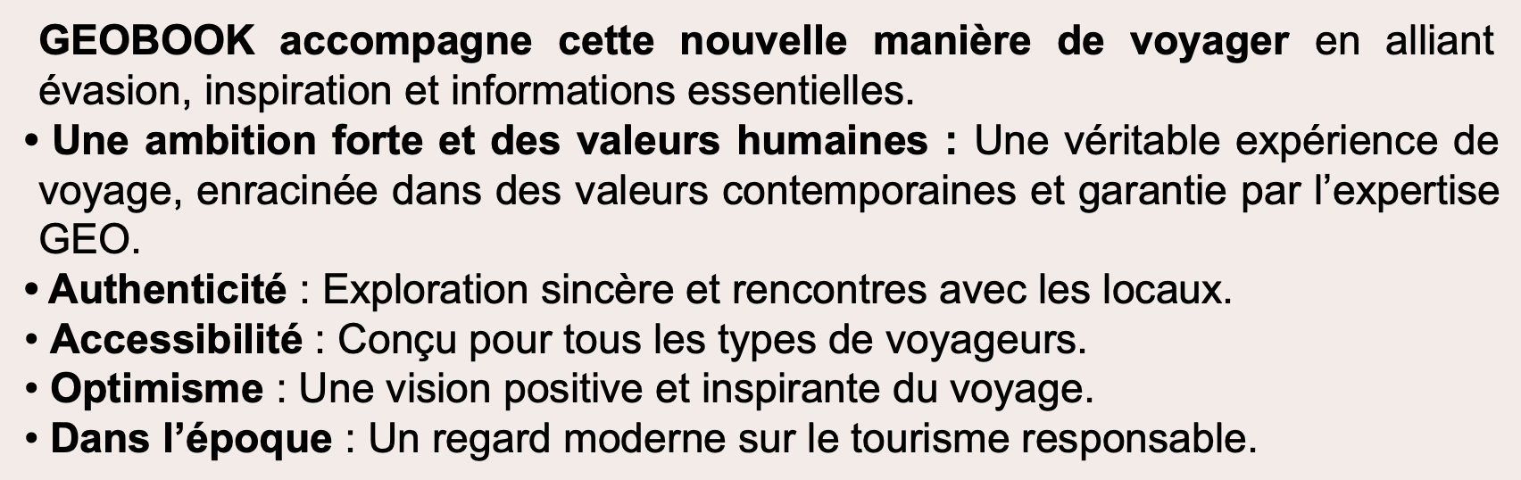 La collection GEOBOOK repose sur un engagement envers un tourisme responsable et une expérience immersive, offrant des contenus riches, utiles et actuels. Conçu comme un beau livre, chaque titre allie praticité, modernité et beauté des photos GEO pour offrir aux lecteurs un véritable plaisir de découverte.