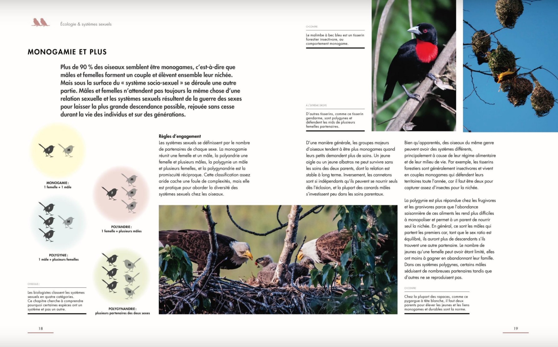 Ce livre explore l'étonnante diversité des modes de reproduction adoptés par les oiseaux à travers le monde, du choix du partenaire à l'élevage des jeunes, en passant par la construction du nid; des histoires attendrissantes d'unions à vie ou des récits glaçants de fratricides, souvent spectaculaires, parfois inattendues, toujours fascinantes. Les magnifiques photos en illustrent toutes les facettes et célèbrent l'extraordinaire beauté des oiseaux.