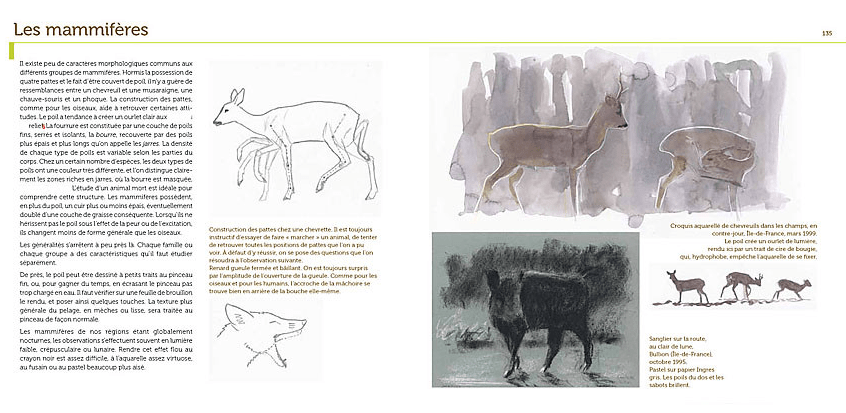 "Petites leçons de dessin animalier, une approche de terrain" chez Delachaux & Niestlé paru le 7/11/2013. env 190 pages très illustrées, pour apprendre à trouver, observer puis dessiner les animaux sur le terrain.