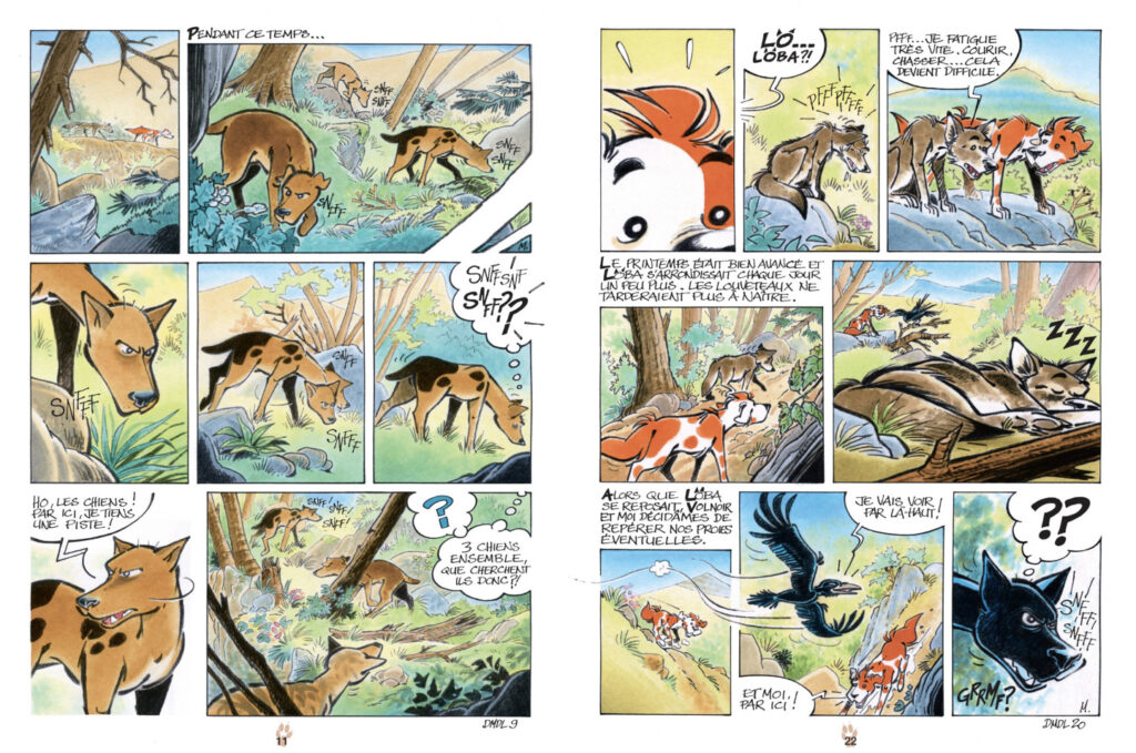 Pour la défendre et protéger les louveteaux à naître, Toupoil, avec l’aide de Volnoir son ami grand corbeau, devra affronter les siens lancés à leur poursuite. Mais trouver un endroit tranquille pour la future meute n’est pas facile, et dans le monde des loups, l’homme n’est jamais très loin…