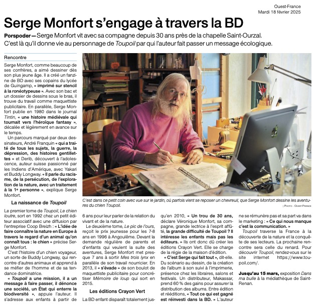 Serge Monfort signe quelques pages pour enfants dans le magazine Tintin au moment où les éditeurs BD se détournent de cette tranche d'âge.