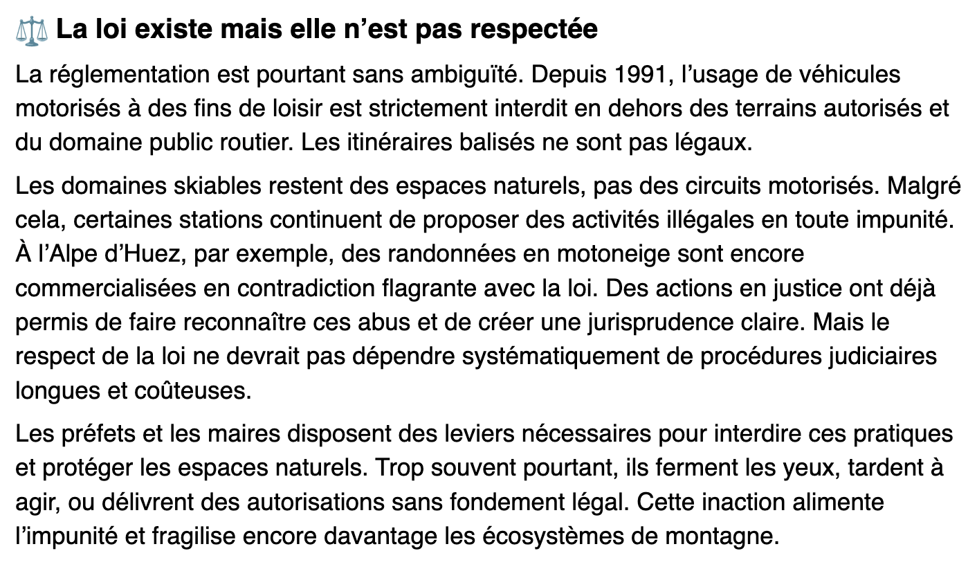 Les montagnes sont un patrimoine commun, irremplaçable. En signant cette pétition, vous soutenez l’application de la loi, la protection de la biodiversité et la fin de l’impunité des loisirs motorisés illégaux. En collaboration avec La Relève et La Peste.