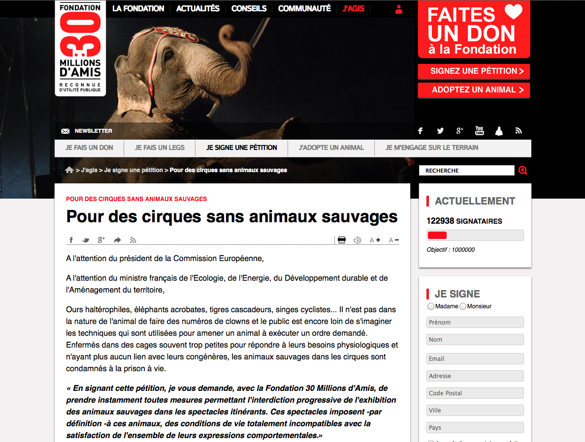 Pétition initiée par la Fondation 30 millions d'amis