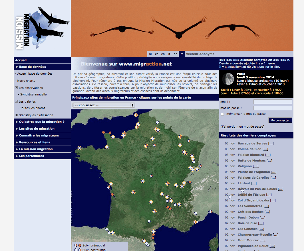 Pour tout connaître sur la migration des oiseaux : suivi et comptage en temps réel à travers l'Europe, fiches sur le oiseaux migrateurs, photos...