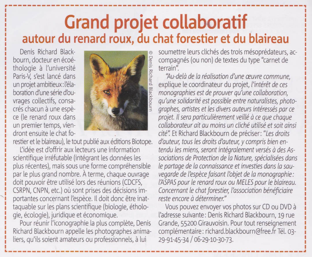 Nous relayons l'article paru dans le magazine Nat'Images, appelant à participer à un grand projet collaboratif