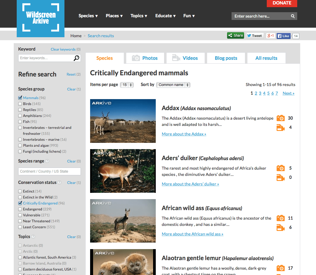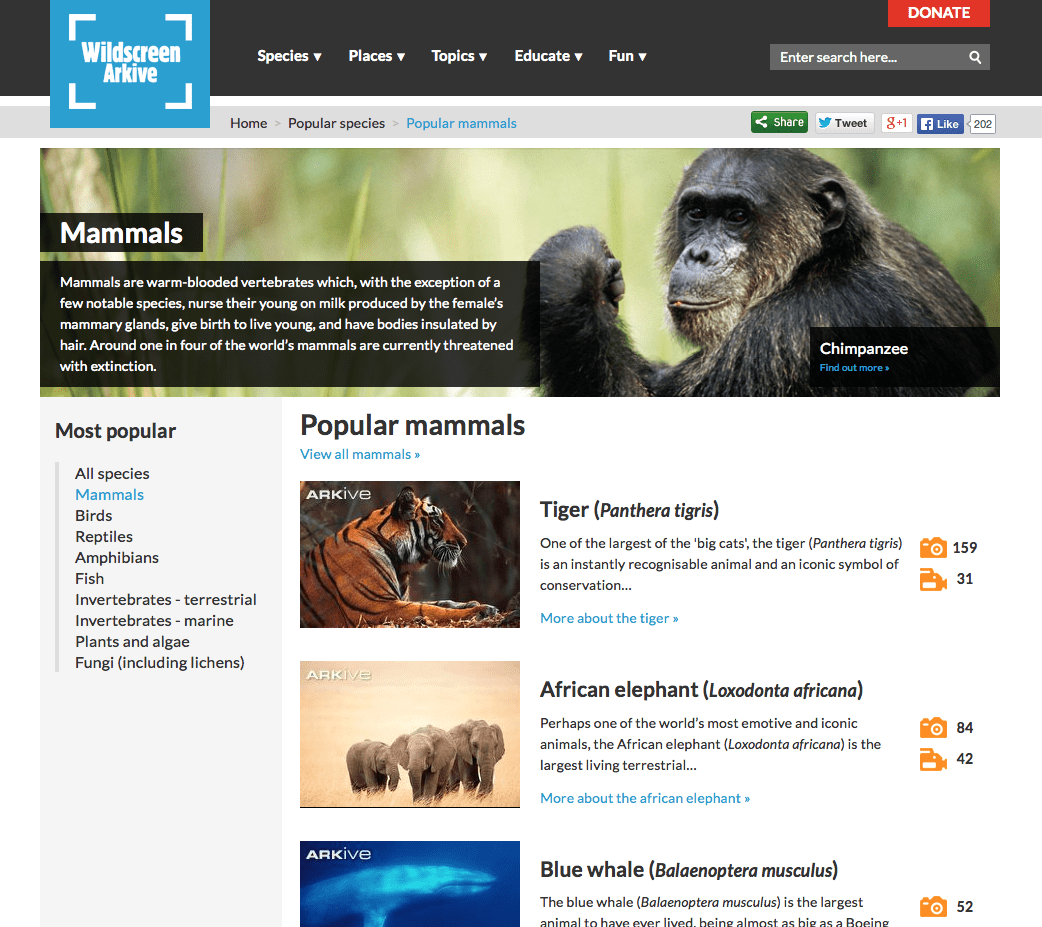 Ce site (en Anglais) extrêmement complet et intuitif utilise les images de photographes animaliers pour encourager le grand public à découvrir et protéger la nature et la faune.