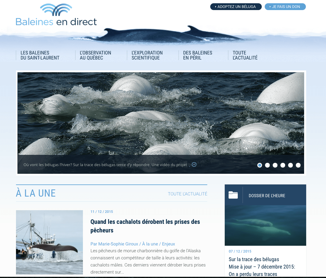 Créé, géré et édité par le GREMM (Groupe de recherche et d’éducation sur les mammifères marins), ce site non-corporatif et sans publicité dépend de l'appui de nombreux partenaires et des dons des internautes.