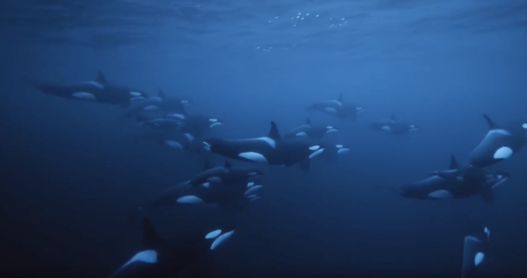 Les harengs qui assombrissent les eaux font les délices des orques et des baleines à bosse, et les saumons remontent les cascades.