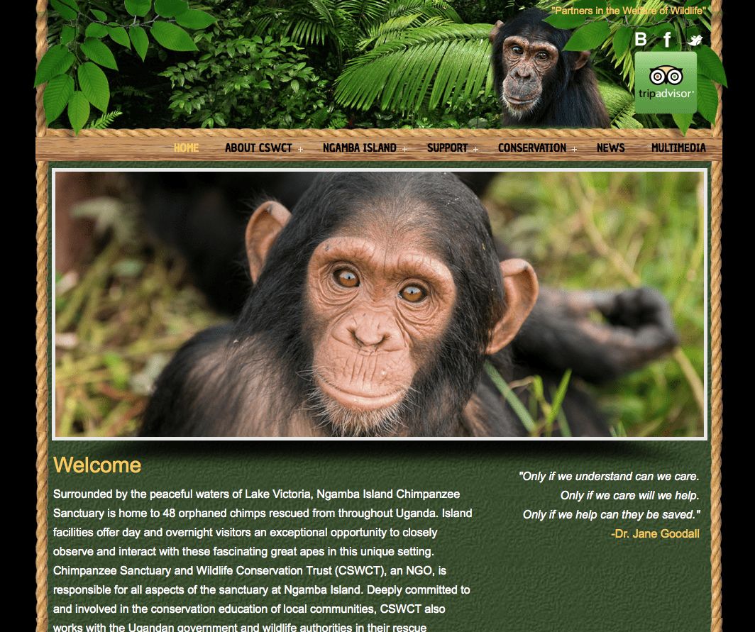 Ce sanctuaire pour chimpanzés a été construit en 1998 sur une île du Lac Victoria en Ouganda.