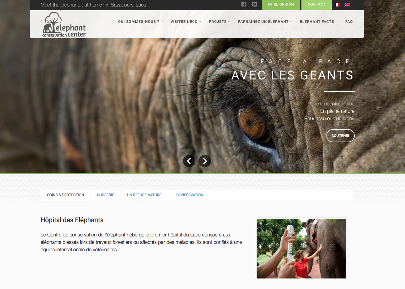 Le Centre de Conservation des Eléphants, situé en République Démocratique Populaire du Laos à Sayaboury, agit pour préserver et protéger l’Eléphant d’Asie, espèce aujourd’hui en voie d’extinction. Créé en 2011 par une équipe de spécialistes, son programme se construit autour du bien-être animal, de la reproduction, des soins vétérinaires, et de la formation des cornacs.