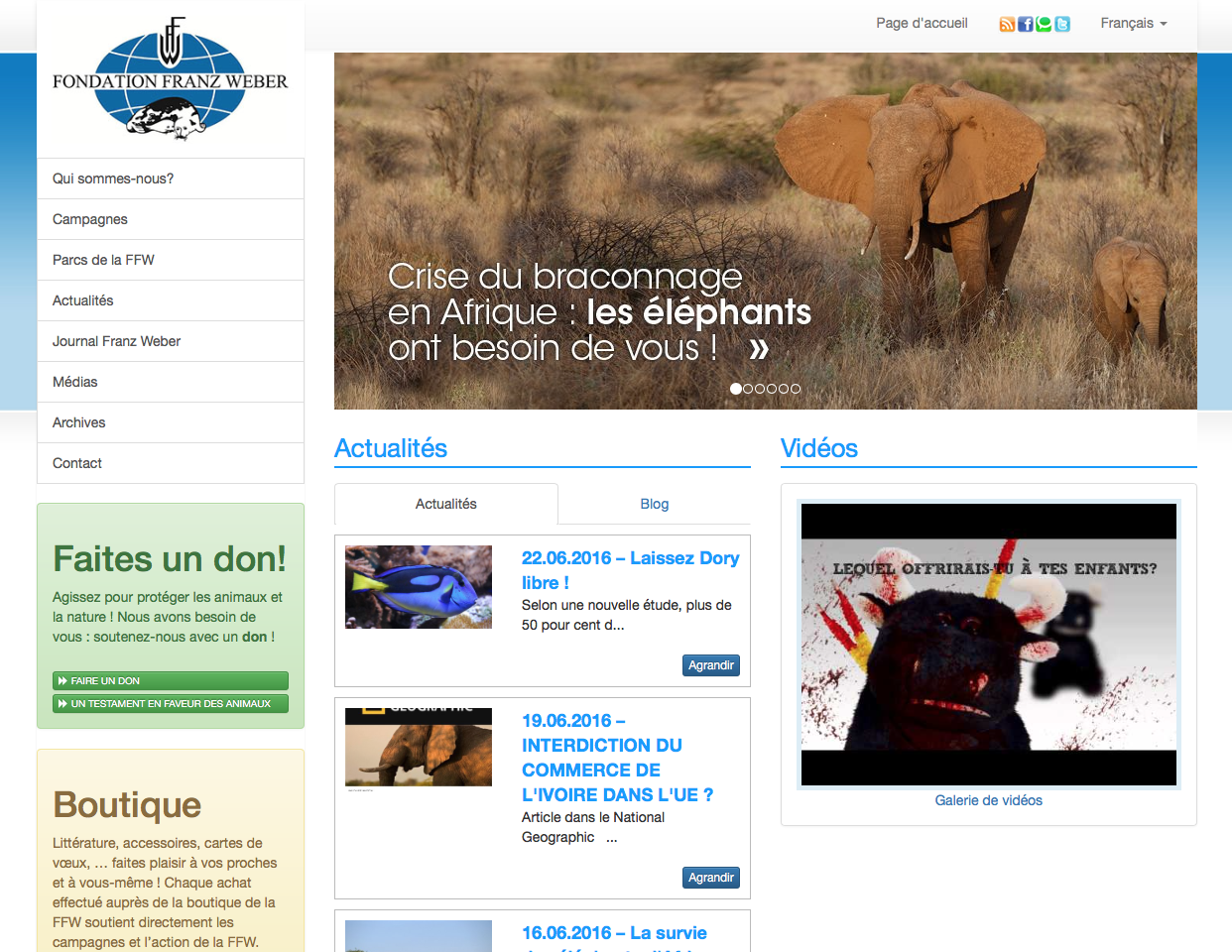 Créée en 1975 par le célèbre écologiste suisse qui lui a donné son nom, la Fondation Franz Weber (FFW) mène en Suisse et dans le monde entier des campagnes variées et engagées pour la protection des animaux et de la nature.