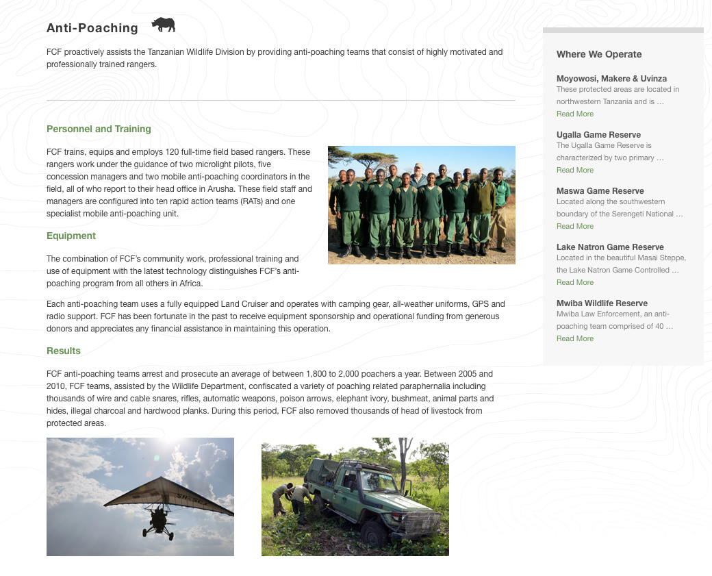 En janvier 2015, un pilote d'hélicoptère de la structure a été tué par des tirs de braconniers d'éléphants au nord du Serengeti.