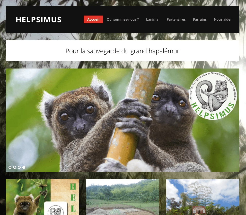 Aujourd’hui, grâce à ses membres et à ses partenaires, Helpsimus finance le programme « Bamboo lemur » qui protège une population de grands hapalémurs récemment découverte au sud-est de Madagascar. Celle-ci évolue à la périphérie du Parc National de Ranomafana, dans une zone non protégée. Helpsimus assure non seulement le suivi scientifique des animaux, mais également le financement de l’éducation des enfants des trois villages situés aux environs immédiats de l’habitat des grands hapalémurs. Helpsimus travaille aussi aux côtés des villageois afin de les aider à mettre en oeuvre des actions de développement durables. Enfin, Helpsimus soutient des programmes de conservation du grand hapalémur dans d’autres zones de son aire de répartition."