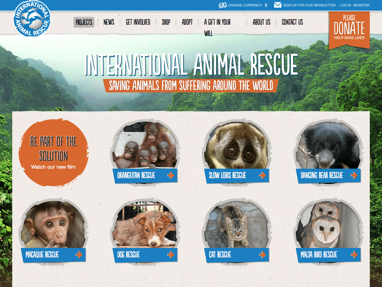 At International Animal Rescue we do exactly what our name says – we save animals from suffering around the world. Our work includes cutting free and caring for dancing bears in India, rescuing primates from captivity in Indonesia and sterilising and vaccinating stray dogs and cats in developing countries. Wherever possible we return rescued animals to their natural environment but we also provide a permanent home for animals that can no longer survive in the wild.