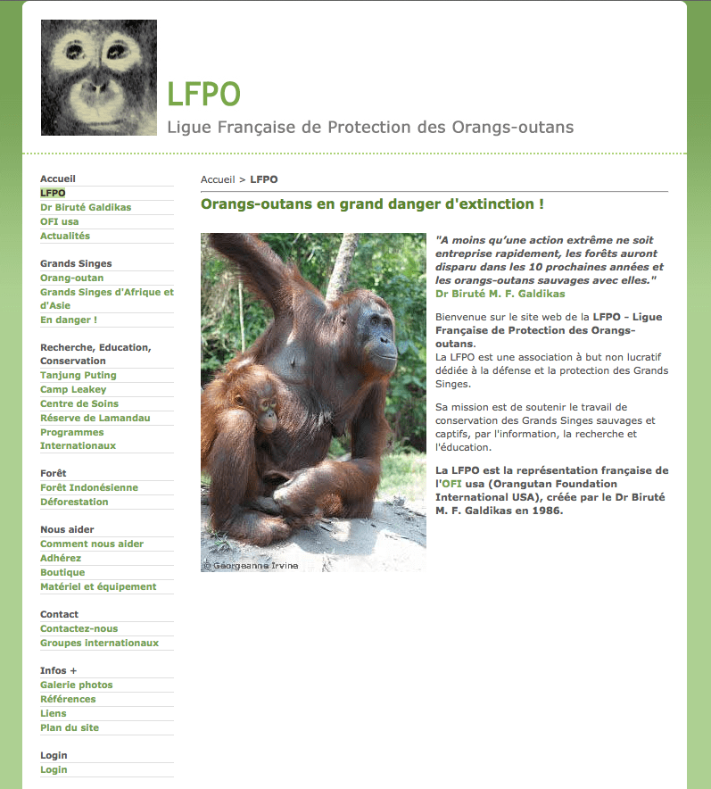 Bienvenue sur le site web de la LFPO - Ligue Française de Protection des Orangs-outans.