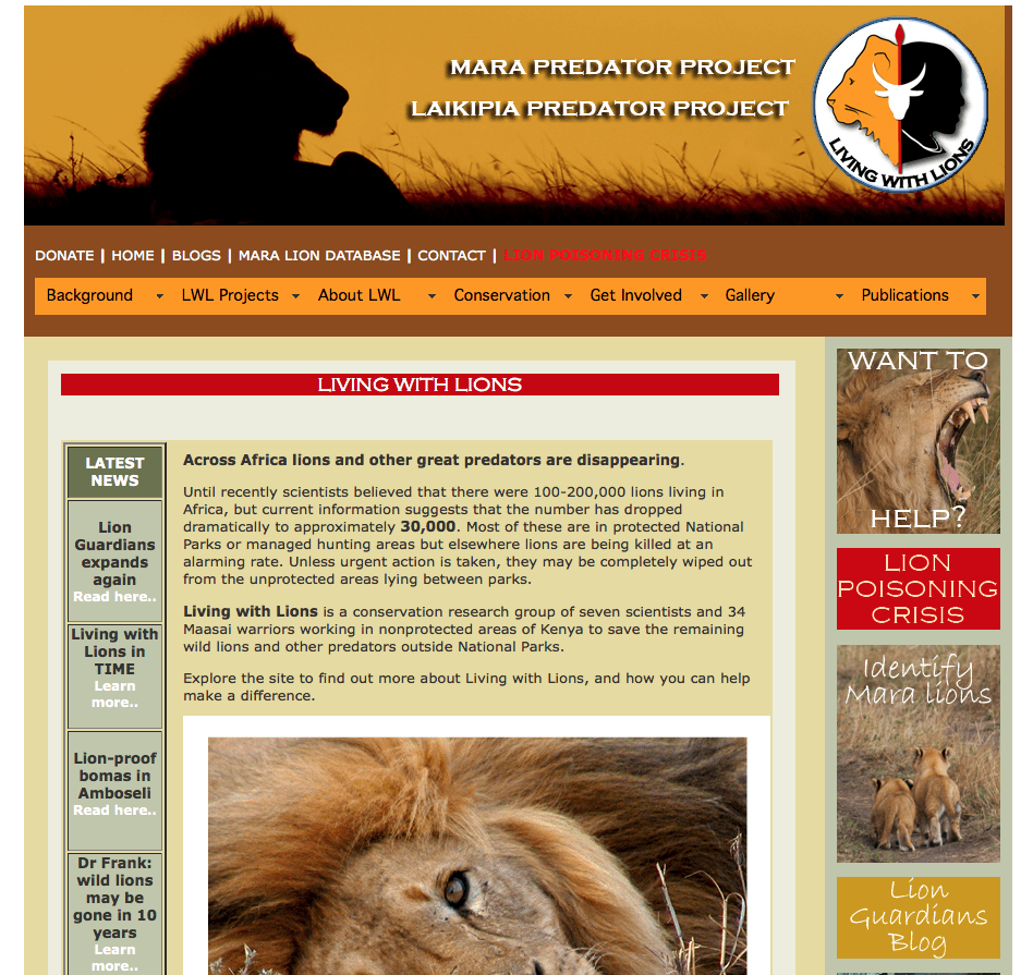 Living with Lions is a conservation research group of seven scientists and 34 Maasai warriors working in nonprotected areas of Kenya to save the remaining wild lions and other predators outside National Parks.