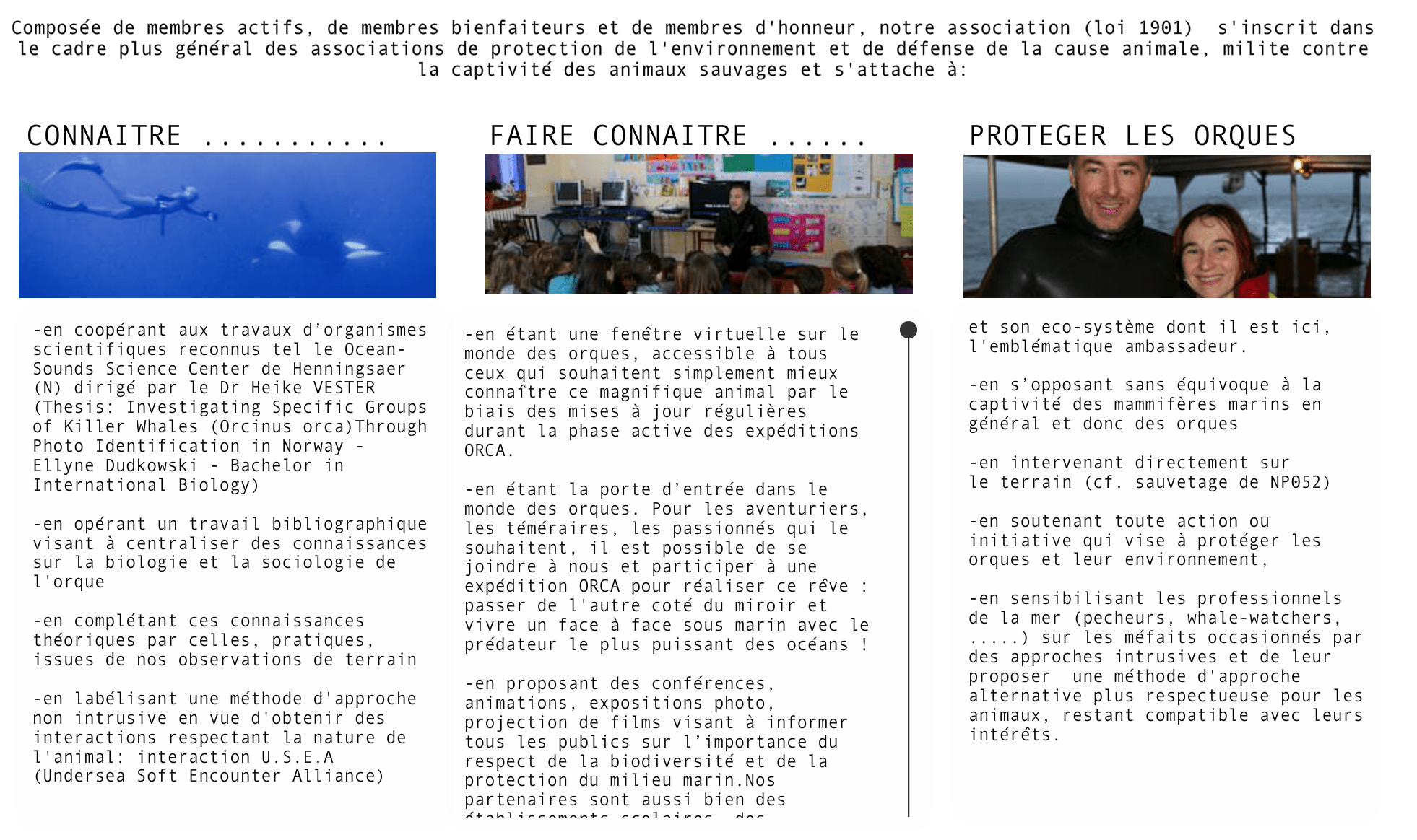 Fondée par Robert de Latour, l'association étudie, protège et fait connaître les orques.