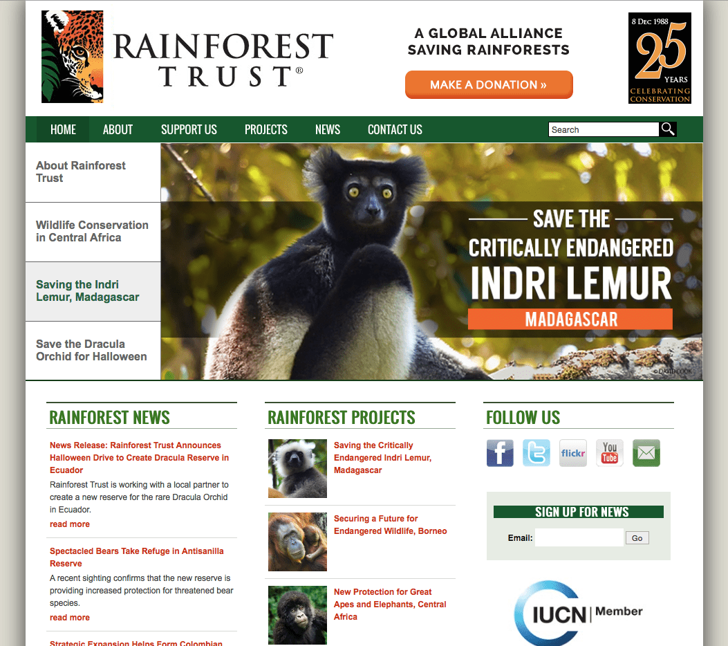 Rainforest Trust achète et protège des parcelles de forêts tropicales parmi les plus menacées, sauvant par là-même la vie sauvage en danger à travers des partenariats et l'engagement des populations locales.