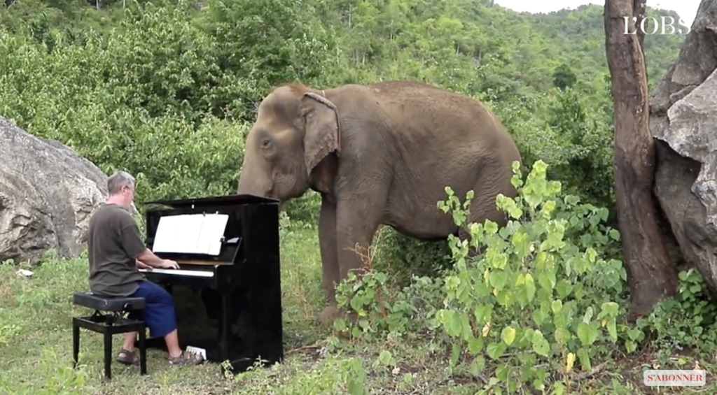 Paul Barton, pianiste anglais, joue depuis 2011 dans la jungle thaïlandaise pour calmer les éléphants aveugles d’un sanctuaire protégé. Beethoven, Bach ou Chopin, à chacun sa préférence !