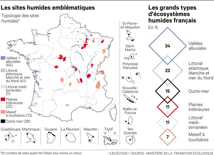 Ce ne sont pas les seuls exemples de détérioration de ces écosystèmes qui – note l’étude – « fournissent de multiples services » : « rétention des crues, épuration de l’eau, réservoir de biodiversité, stockage du carbone, activités récréatives, etc. » Et qui subissent des pressions toujours plus fortes, au point de mettre en péril « la pérennité même de ce patrimoine naturel ».