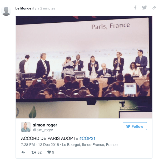 Dernières infos COP 21 : Accord de Paris adopté 12 Déc Quand les cachalots dérobent les prises des pêcheurs Les gouvernements ont posé les bases d'une action ambitieuse de lutte contre le changement climatique