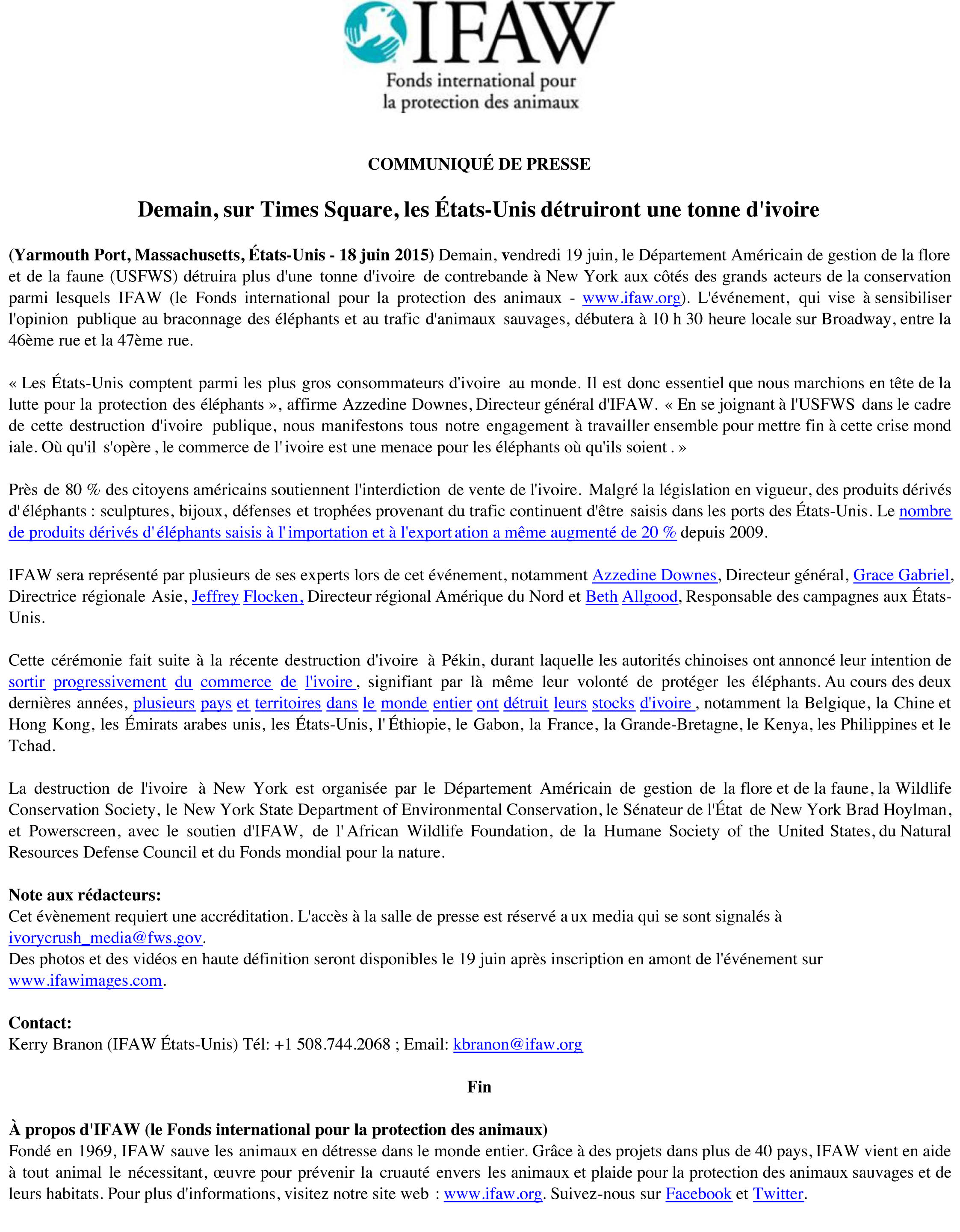Le communiqué de presse de l’IFAW