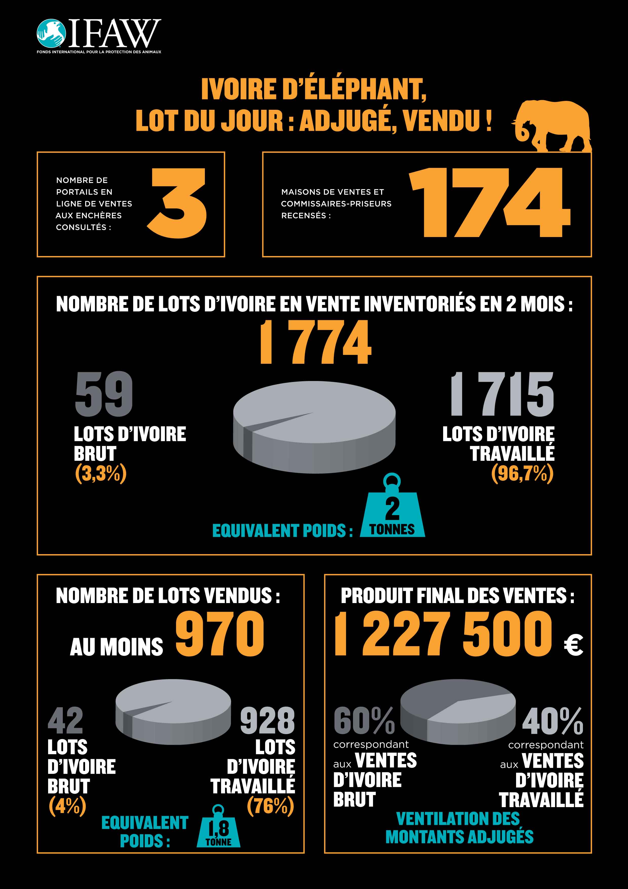 « IFAW salue les efforts du gouvernement français mais attire son attention sur le paradoxe qu’est celui de maintenir ouvert le marché des ventes aux enchères publiques d’ivoire » souligne Céline Sissler-Bienvenu, directrice d’IFAW France et Afrique francophone. « IFAW appelle les autorités françaises à la cohérence en interdisant tout commerce d’ivoire tant que les éléphants continuent d’être décimés pour des objets dont personne n’a besoin. »