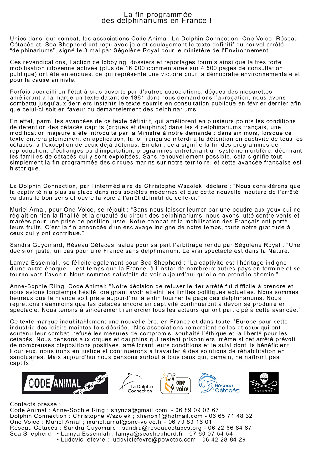 Avis de tempête sur les delphinariums. L’arrêté interministériel sur « les règles de fonctionnement des établissements détenant des cétacés » a été publié au Journal officiel samedi 6 maiavec un changement majeur : la reproduction des orques et des dauphins détenus en France est désormais interdite, de même que les échanges avec d’autres bassins.