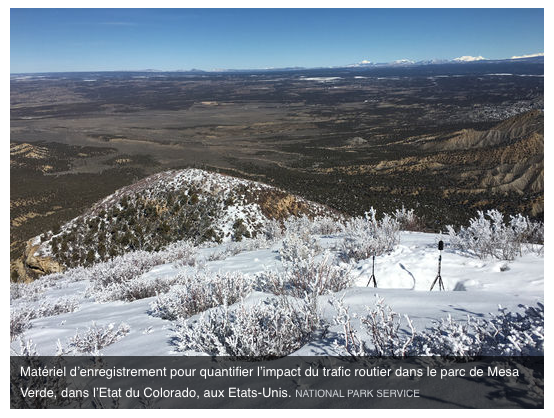 Cette pollution sonore, car c’en est bien une, constitue une nouvelle menace pour les aires protégées et les espèces qu’elles abritent : elle réduit leur survie et leur reproduction, entraînant des effets en cascade pour l’ensemble des écosystèmes. Voilà l’alerte lancée par une étude publiée dans la revue Science vendredi 5 mai, la première menée à une échelle aussi large, celle du continent américain. (…)