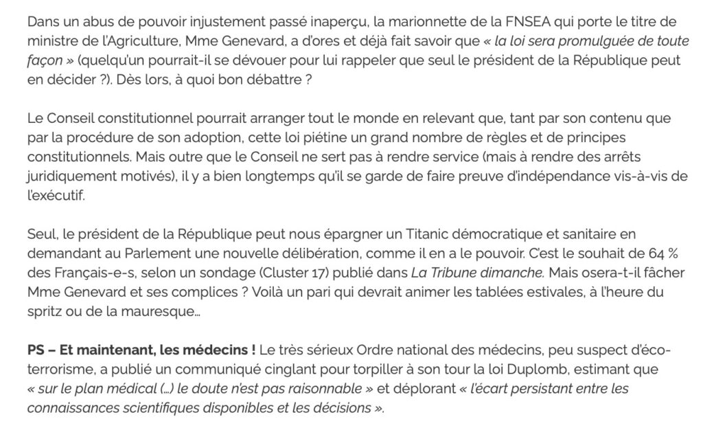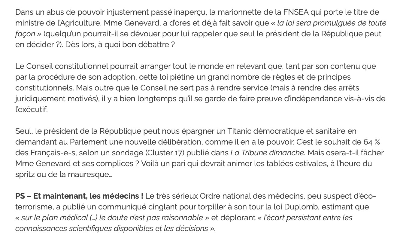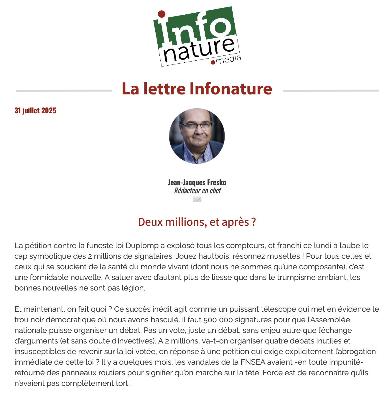 Jean-Jacques Fresko, rédacteur en chef du magazine en ligne « InfoNature media », nous gratifie régulièrement d’éditos bien sentis, et bien écrits !
